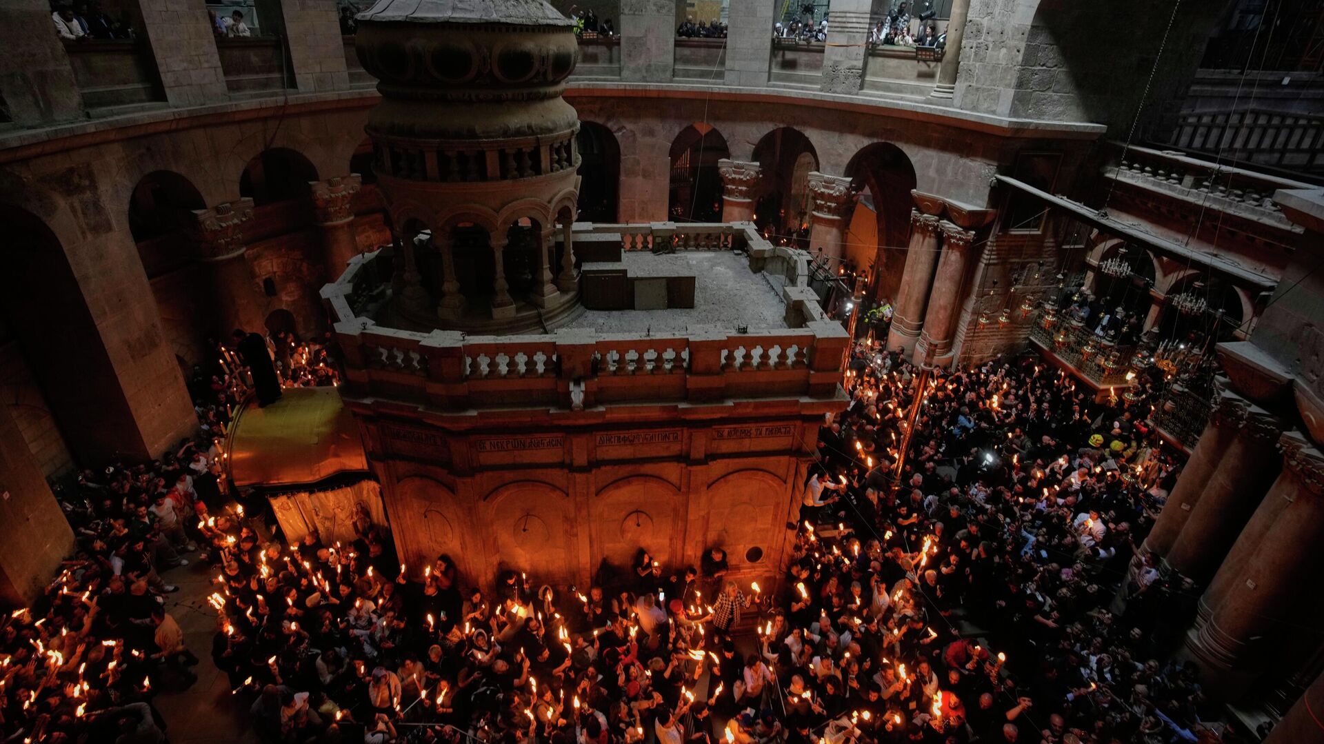 Литания (церковная церемония) Святого Огня начинается примерно за сутки до православной Пасхи. В храме, вмещающем 10 тысяч человек, собираются паломники – и христиане, и мусульмане, и атеисты. Вся площадь перед ним и окрестности заполнены - желающих увидеть Чудо великое множество.