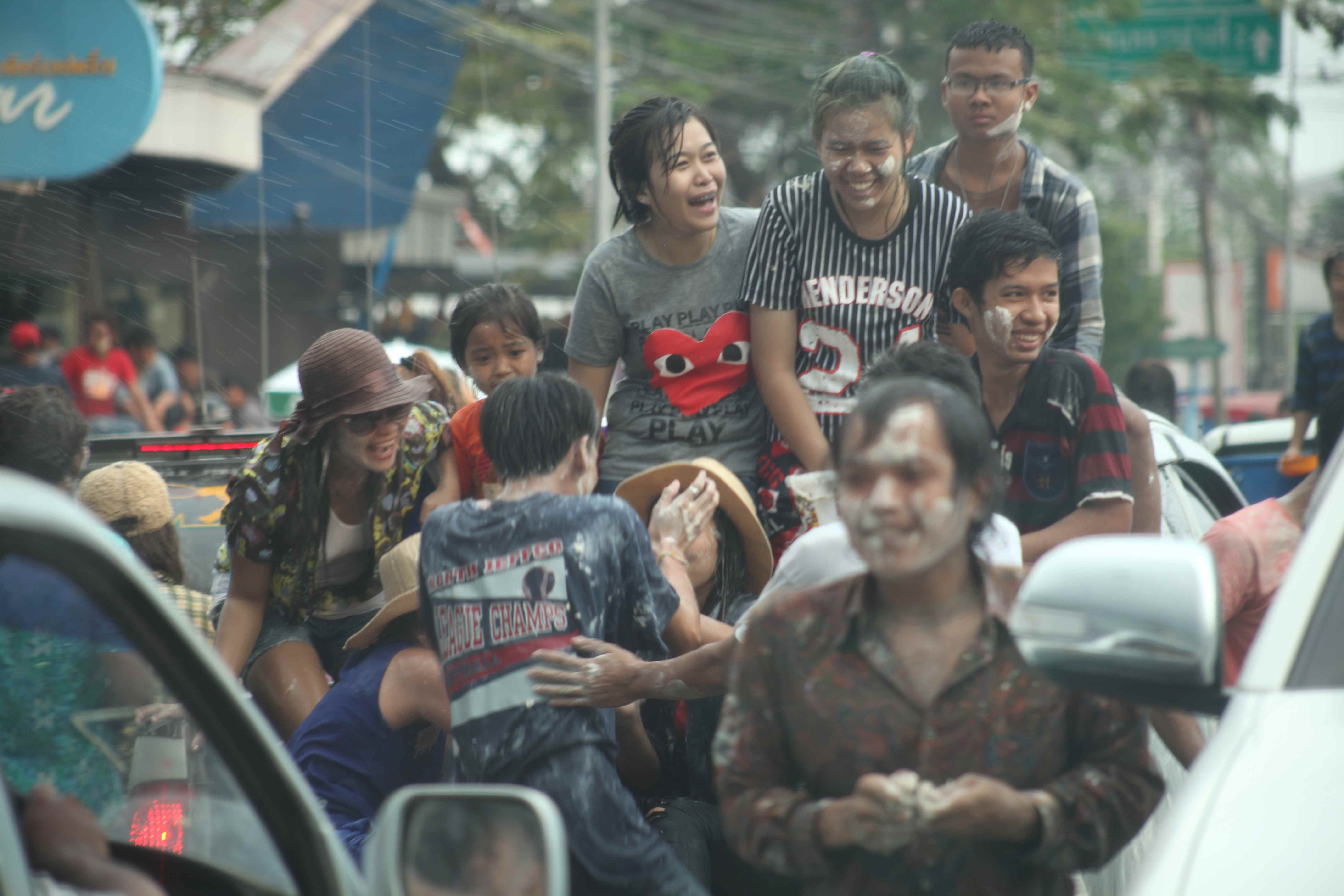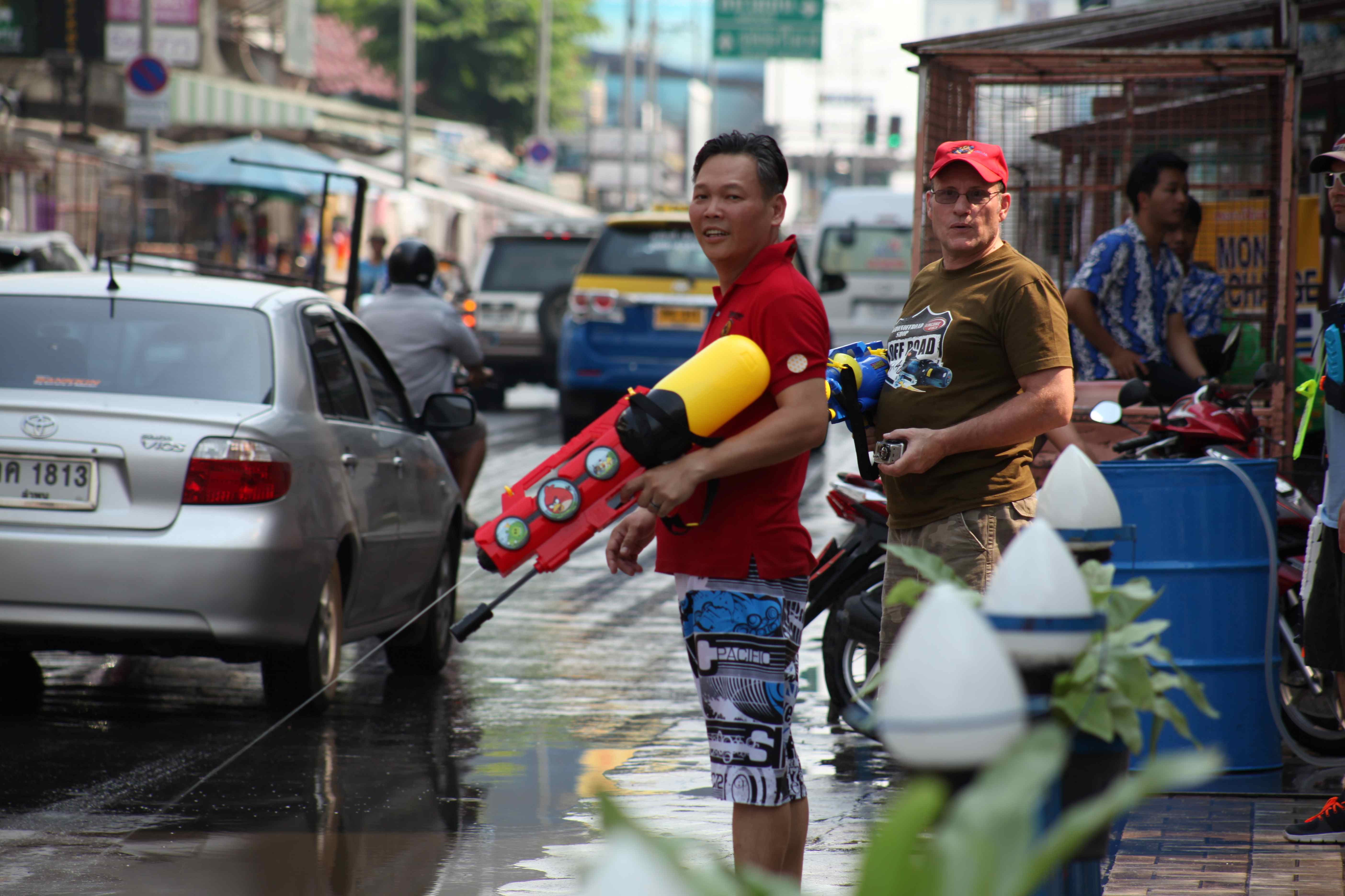 Во-вторых, есть традиция: раньше в Сонгкран тайцы ходили по улицам и брызгали водой на прохожих, а сейчас радостно поливают всех подряд из всего, что попадется под руку, - ведер, водных пистолетов и даже шлангов. Тайцы, в основном, конечно, юные, шастают по улицам с емкостями, наполненными водой, и поливают встречных. Что, в общем-то, в апрельскую погоду довольно приятно.
