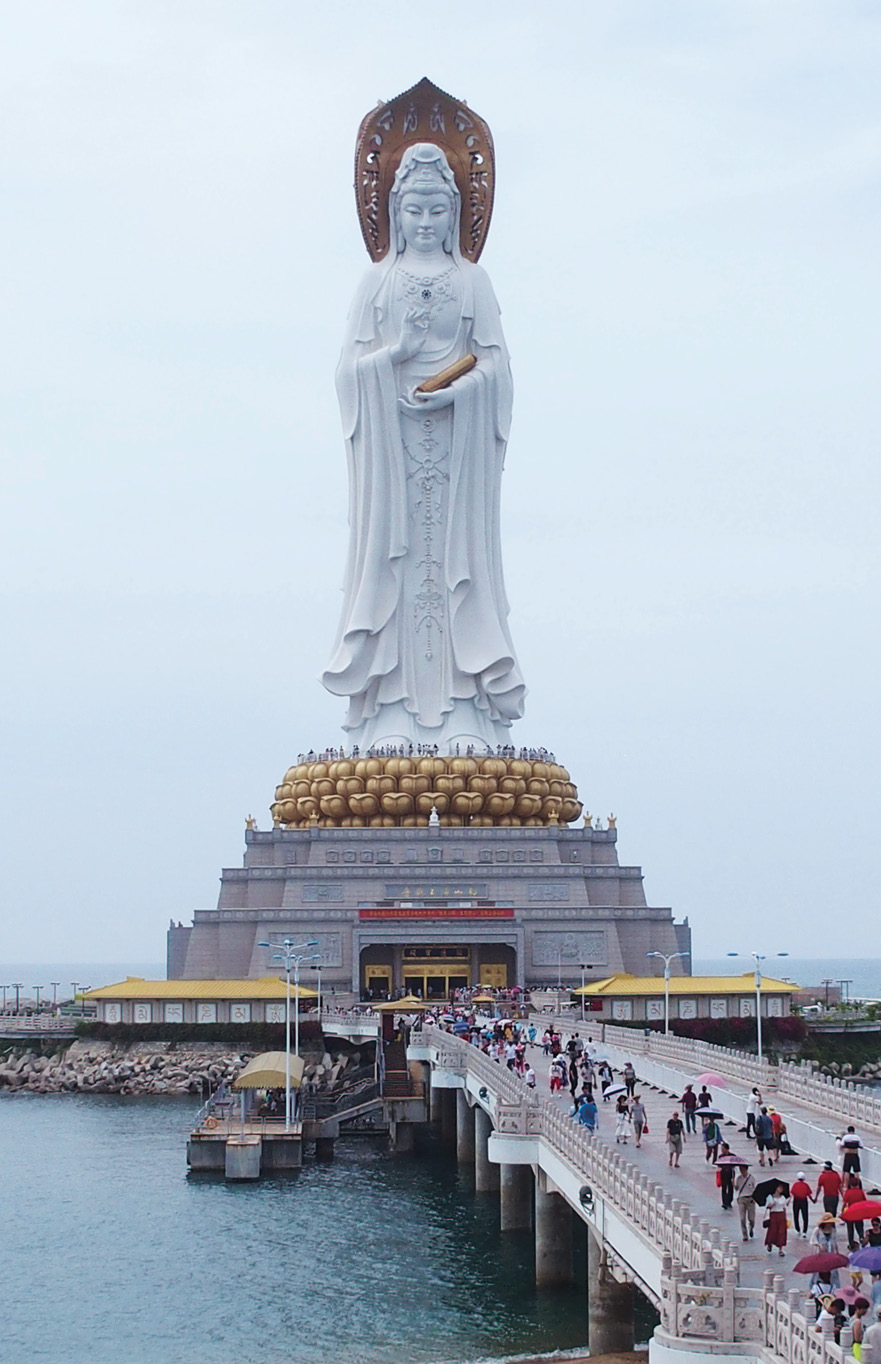 – Конечно же, статуя богини Гуаньинь. Далее отель на искусственно созданном острове Феникс. Дома-деревья – комплекс из 9-и небоскребов, построенных в виде деревьев. Один из самых больших в мире комплексов дьюти-фри, расположенный в бухте Хайтангбей. И, наконец, обзорный стеклянный мост в бухте Ялунвань.