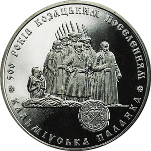 При этом на 2-гривенной монете 2009 года (рис. 4), как и на 5 гривнах 2005 и 2017 годов (рис. 5 и 6), скорее всего изображены несуществующие либо видоизмененные художниками изваяния. То есть некие собирательные образы. И знаете – почему? Потому что науке неизвестны каменные бабы с украинскими чубами на голове. Казаки ведь хоронили своих мертвецов уже под крестами. А у этих истуканов явно просматривается чуб (оселедец). Как, собственно, и другие детали: шейные украшения, кубки и холодное оружие.