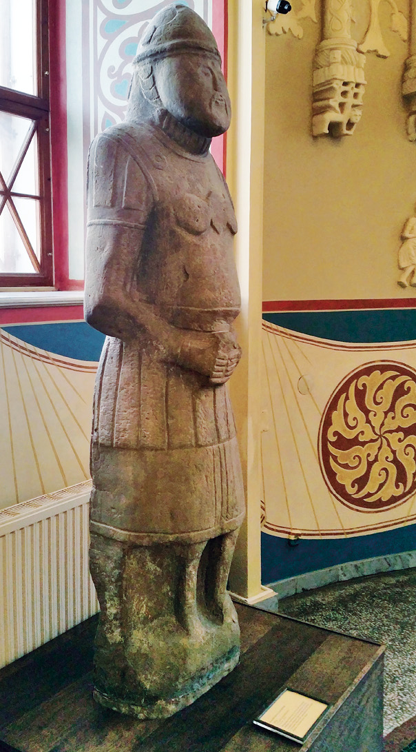 Там же изображена и самая что ни на есть половецкая каменная баба. Ученые научились определять и классифицировать степных идолов по иконографическому характеру позы и полу изображенного. В данном случае налицо характерные признаки, типичные для скульптур кочевых тюркоязычных народов, известных на Руси под именем половцы (самоназвание – кыпчаки). В XI-XII веках они заселяли обширные евразийские территории от Дуная до Иртыша – так называемую Половецкую степь.