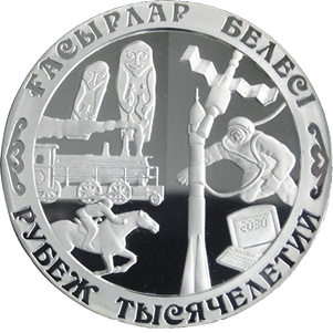 Монета «Рубеж тысячелетий» – одна из самых редких казахстанских монет (рис. 12). Если не самая редкая. Но не потому, что ее тираж всего 2000 штук, а благодаря тому факту, что она стала первой памятной монетой, изготовленной Казахстанским монетным двором с качеством чеканки proof, что значит «высшая коллекционная». При ее создании применялись новые технологии. Со слов автора эскиза дизайнера Нацбанка РК Виктора Ивженко, «обычно монета имеет форму линзы, а здесь у нее четкая грань – одно тысячелетие; с другой стороны – другое. Эти два изображения ловятся под определенным углом освещения. Такого в мире никто не делал».