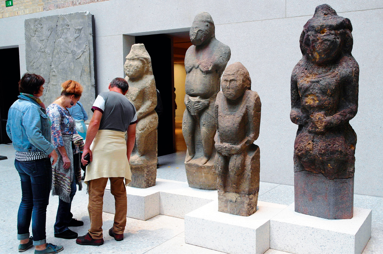 Более ранние изваяния выглядят как плоские каменные стелы с вырезанными на них ликами и руками. Но чем позднее они создавались, тем сложнее становились образы и техника исполнения.
