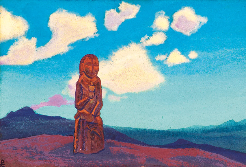 Образы степных изваяний вдохновляли и Николая Рериха. Так, на картине «Страж чаши» (1928–1930) изображен хранитель священного огня жизни; он держит в руках кинжал и чашу с пламенем – знаки силы и очищения