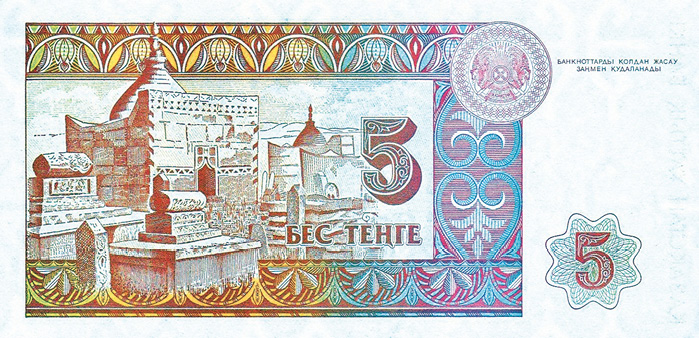 Традиция надмогильных памятников под стать балбалам не канула в лету. Сегодняшние казахи, прямые наследники древних кочевников, в память о своих усопших также устанавливают каменные изваяния (в основном в Западном Казахстане). Это так называемые кулпытасы – стелы, испещренные вырезанными в камне витиеватыми надписями. Взглянуть на них, не нарушая покой мусульманских погостов, можно обратившись к давно вышедшей из обращения банкноте Казахстана в 5 тенге 1993 года (рис.14).