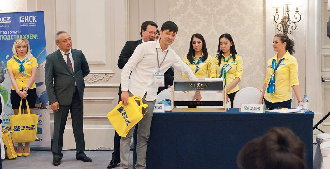 – О степени интереса к сегодняшнему мероприятию говорит тот факт, что на него было зарегистрировано 325 туристских агентств. Мы провели наш воркшоп во второй день выставки KITF с расчетом, что в нем примут участие не только компании из Алматы, но и со всего Казахстана. И эта задумка удалась. Мы впервые проводим подобное мероприятие, объединив два таких формата, как воркшоп и роуд-шоу. В первой части гостей встречали 19 наших партнеров: отельеры из Турции, Доминиканы и острова Хайнань, авиакомпания SCAT/Sunday Airlines, Комитет по туризму провинции Хайнань (КНР) и Министерство туризма Доминиканской Республики, а также страховая компания НСК. Вместе с ними были и наши представители в Турции, Беларуси и на Хайнане. Три с половиной часа прошли в жестком рабочем графике, после чего состоялся розыгрыш призов и подарков, а для 150-и наших лучших партнеров из ведущих турагентств Казахстана был дан гала-ужин с разнообразной концертно-развлекательной программой, включавшей выступление популярной казахстанской рок-группы Royals Band.