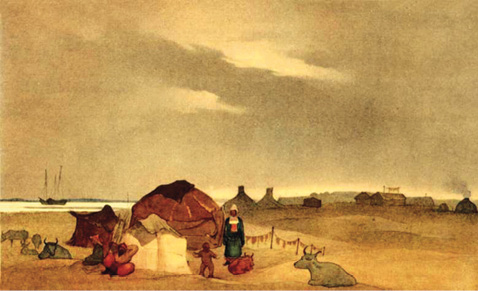 Тарас Шевченко. «Казахская стоянка на Кос-Арале». 1848-49