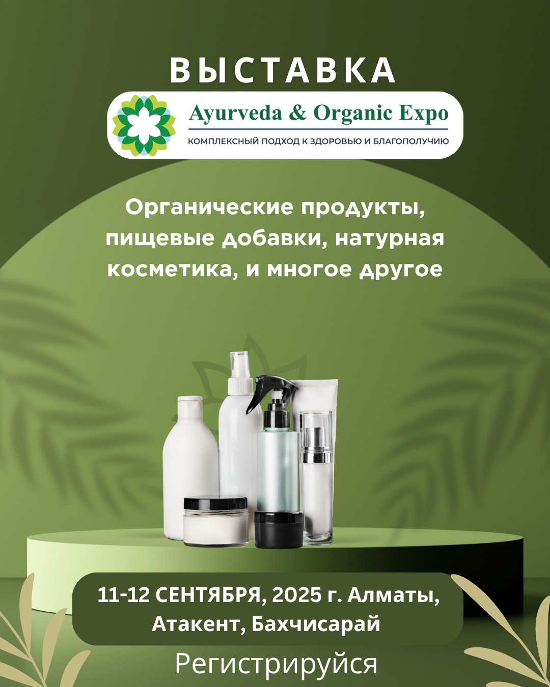Приглашаем вас на выставку Ayurveda & Organic Expo 2025, которая состоится 11–12 сентября 2025 года в Алматы, КЦДС «Атакент», Дом приёмов «Бакшасарай», павильон 1.