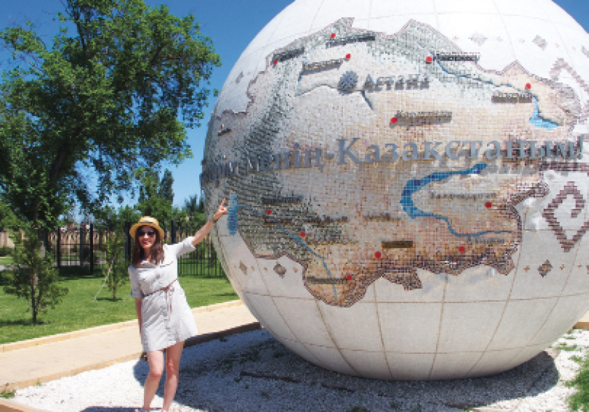 Нас в первую очередь привлек к себе огромный – метра четыре в диаметре – шар с до боли знакомыми контурами. Это был глобус Казахстана