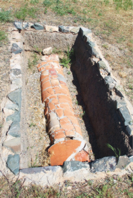 Рядом находятся остатки водопровода. Гончарные трубы соединялись гончарными же муфтами под особым наклоном и несли в центр города воду из реки Талас (без нее бы и бани не было). Кстати, здесь же были найдены трубы канализации.