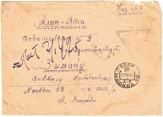 «Виктор Матвеевич, ходите ли в горы? Я так о них соскучилась. Пришлите фото наших гор. После войны опять походим в горы. Жить буду только в Алма-Ата».