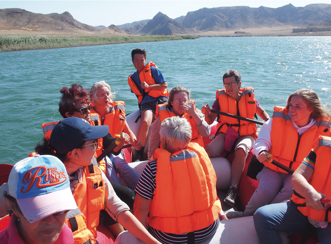 Вот и мы в своем автобусе везли небольшой надувной плот, вместивший, как оказалось позднее, всю нашу компанию из тринадцати человек. «Мы» – это участники экскурсии «Будды на Или» в урочище Тамгалы-Тас, которую в один из дней благодатного для Алматы бабьего лета – 23 сентября – организовала Казахстанская туристская ассоциация (КТА) совместно с Туристским информационно-методическим центром Казахской академии спорта и туризма для сотрудников туркомпаний южной столицы и всех желающих.