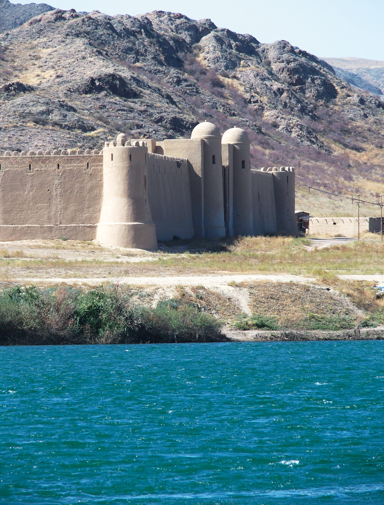 Мы проехали мимо «Писаных скал» (так с тюркского можно перевести Тамгалы-Тас – «камни со знаками») и отправились дальше, вверх по течению. Внезапно взору открылась удивительная картина – на другом берегу, у подножия холмов стояла средневековая крепость. Для впервые попавшего сюда непосвященного путника зрелище, конечно, поразительное – ведь рядом ни души: только холмы, скалы, река, да бездонное небо.