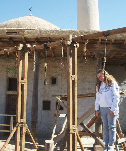 Внутри было пустынно: узнав о нашествии, жители заблаговременно покинули город. Мы бродили по крепостным стенам, заглядывали в бойницы, спускались во внутренние дворики и улочки, обнаружили массу полезных в хозяйстве вещиц: стрелы для луков, деревянное колесо фортуны, осадный таран, виселицу. Золота не нашли, но золотой запас впечатлений пополнили.