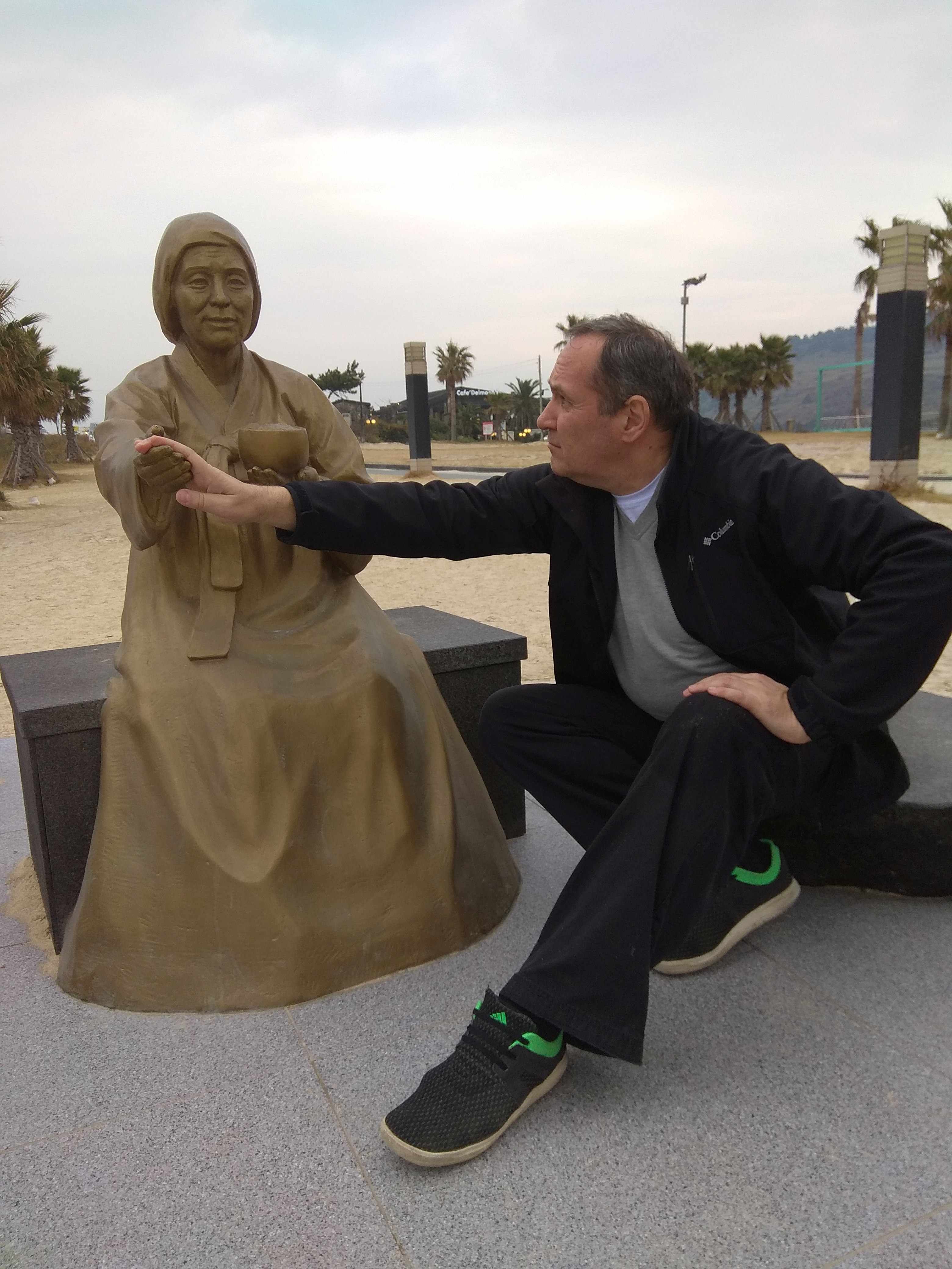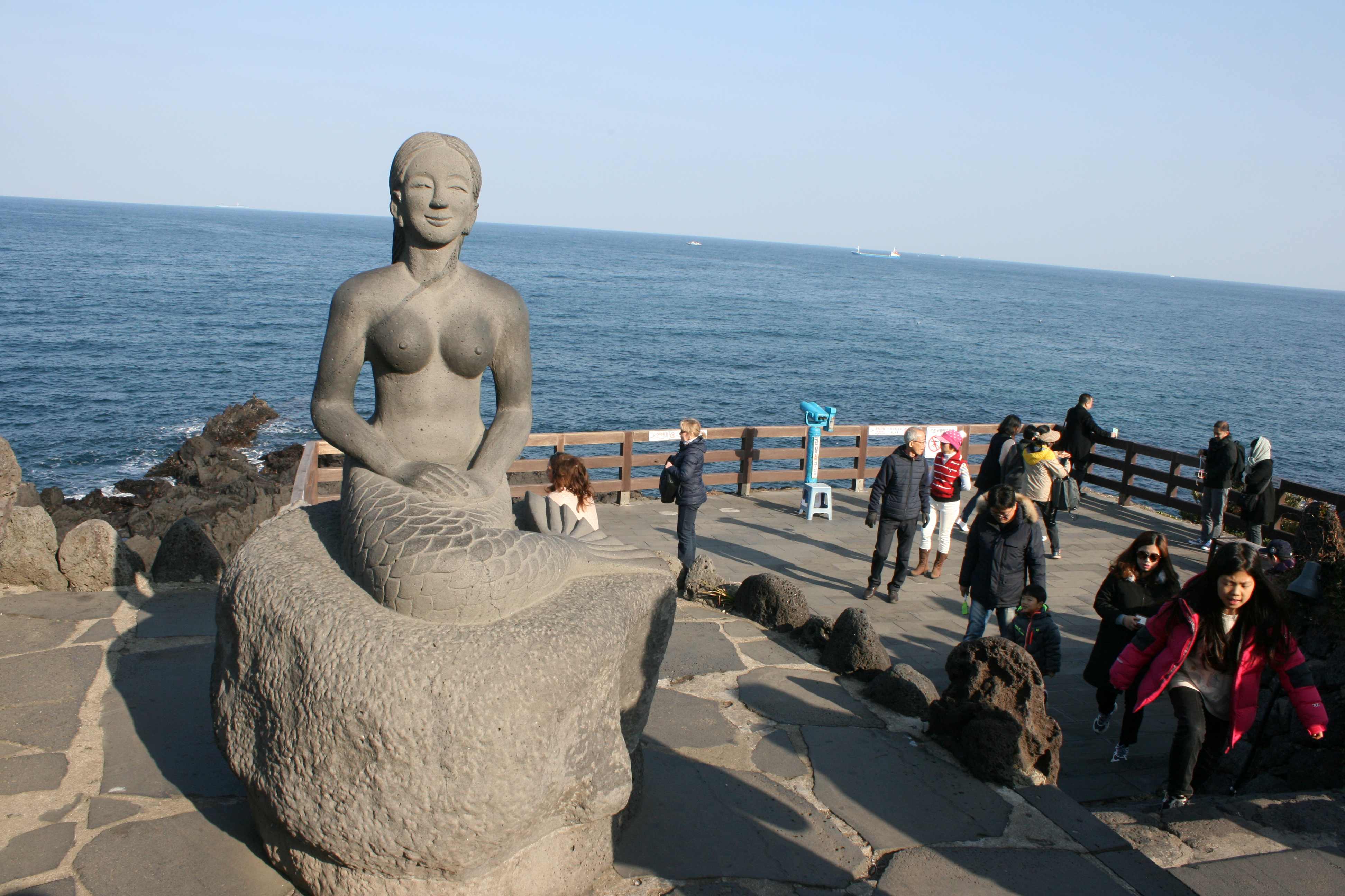 Для нас это был первый визит в «страну утренней свежести» и на ее остров Чеджудо. Подлетая к одному из крупнейших в мире аэропортов – Инчхону, – мы увидели внизу снег. Но уже через пару часов мы вылетели из другого сеульского аэропорта Кимпо на остров Чеджудо, где в это время начали распускаться камелии и поспели мандарины.