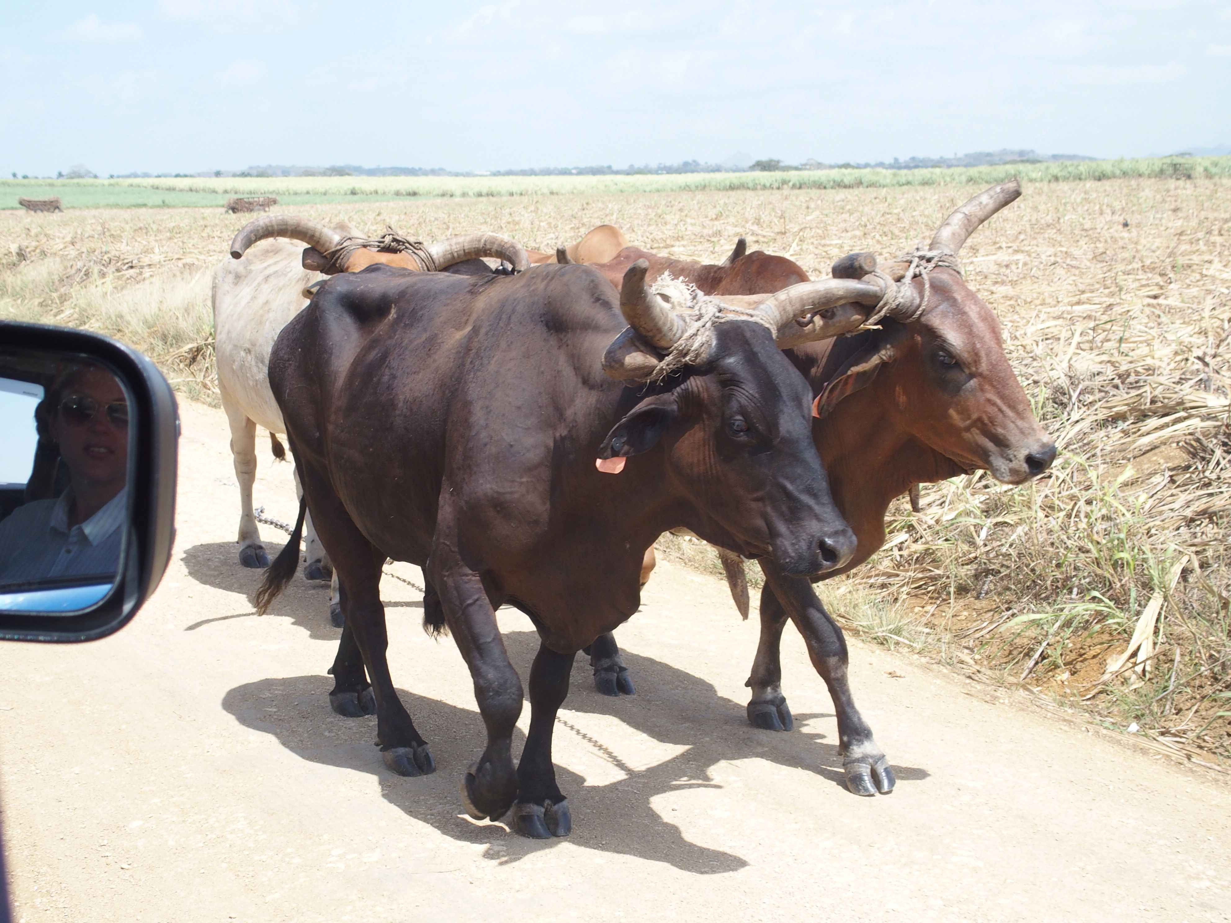 И всё-таки, Доминикана одновременно дорогая и очень бедная страна. Когда мы выехали за территорию нашего шикарного отеля сразу появились другие виды. На обочинах валялся мусор, здесь же под колонкой кто-то мыл голову, а в поле сгружали тростник в огромную телегу, запряженную волами...